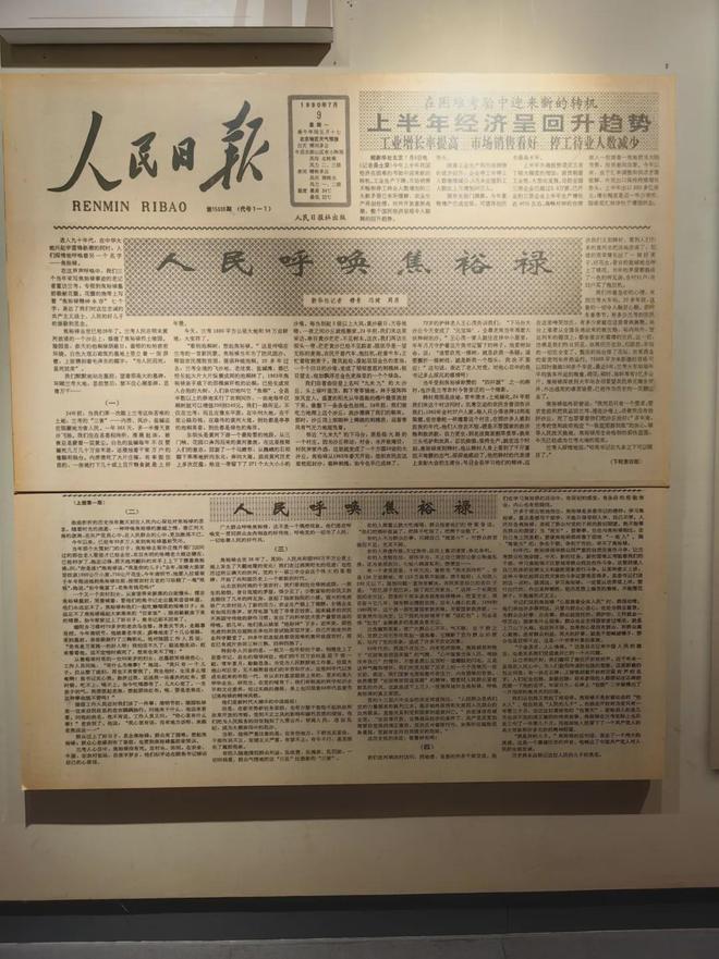 陈列大厅众多的文物中,有两件尤为令人瞩目。一件是刊发《人民呼唤焦裕禄》一文的《人民日报》原件,另一件是新华社记者穆青等人当年采写《县委书记的榜样——焦裕禄》一文的出版清样修改稿。