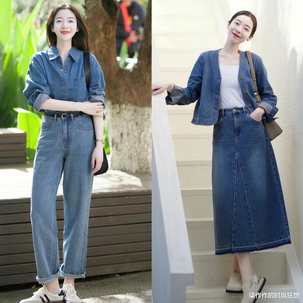 牛仔衬衫,搭配简单的牛仔裤,上下同色系会给视觉带来顺延感,显高显瘦的效果超好,又不用太费力就可以穿出高级感来了。