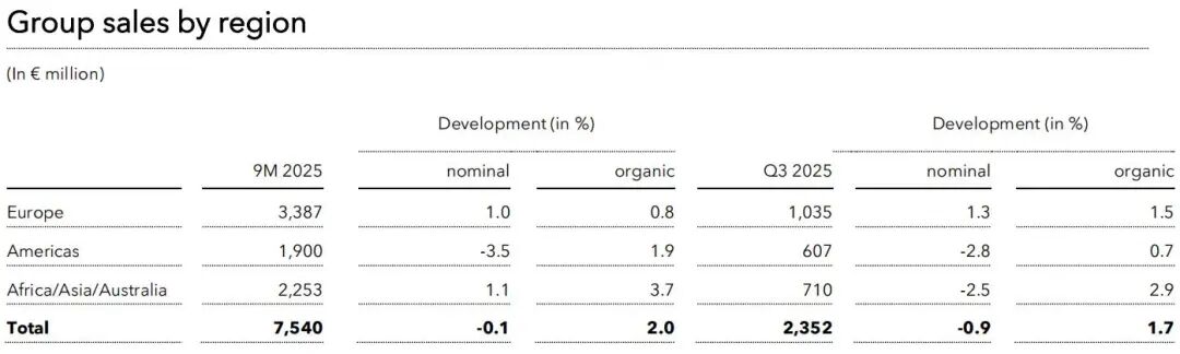 值得注意的是,所有区域在第三季度的名义增长都面临压力,这反映了宏观经济不振和可能存在的汇率负面影响,但有机增长数据表明其核心业务的基本面依然稳固。