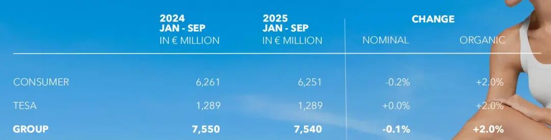 日前,拜尔斯道夫集团公布了其前九个月的财务业绩。在全球护肤品市场充满挑战的环境中,集团实现有机销售额增长2.0%,达到75亿欧元(约合人民币620亿元)。2025年第三季度的总销售额为23.5亿欧元(约合人民币194亿元),名义下降0.9%,但剔除汇率等影响,其有机销售额实际上增长了1.7%,这一成绩凸显了公司业务的韧性。