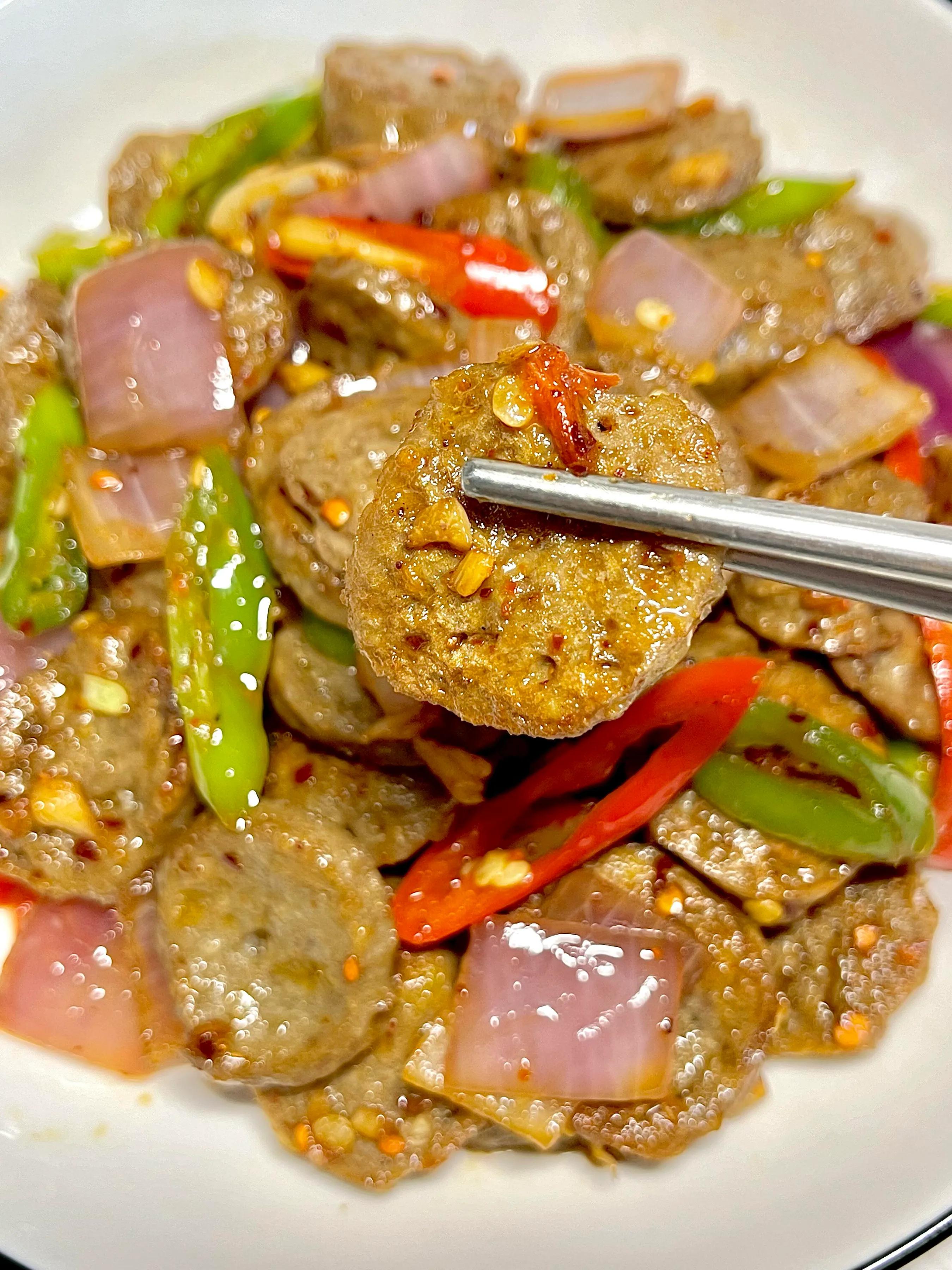 这道爆炒牛肉丸,对我来说可不只是一道菜,它还藏着一段温暖的回忆。有一次我加班到很晚,拖着疲惫的身体回到家,又累又饿,一点做饭的力气都没有。就在我发愁今晚吃什么的时候,男朋友神秘兮兮地钻进厨房,不一会儿就端出了一盘热气腾腾的爆炒牛肉丸。他笑着说:“快尝尝,我特意给你做的。”我夹起一颗牛肉丸放进嘴里,那Q弹的口感和浓郁的香味瞬间在嘴里散开,疲惫感一下子就消失得无影无踪。从那以后,爆炒牛肉丸就成了我们家的“幸福密码”,每次吃这道菜,都会想起那个温暖的夜晚和男朋友满满的爱。