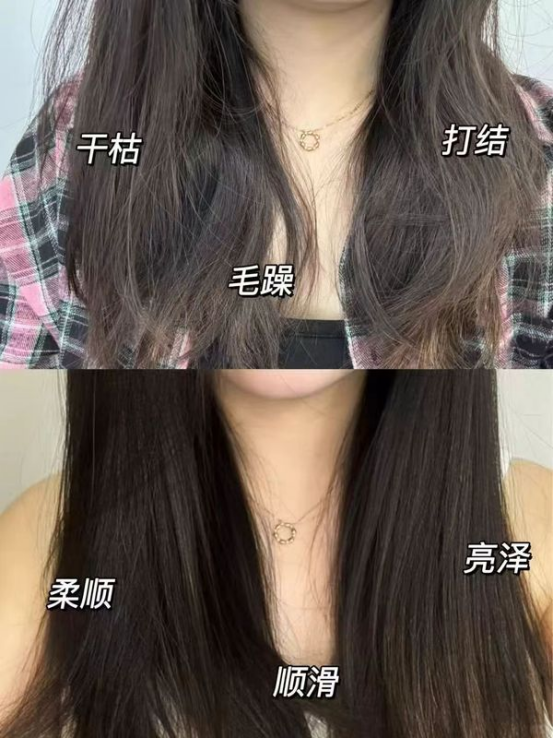 使用感受方面,我确实能感受到头发变得更加顺滑了,光泽感也有所提升。但在深层修复上,它的效果就会显得比较有限,更多的还是比较适合日常的保养护理,特别是对于干性发质来说会比较合适。