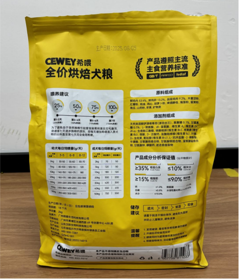 包装标签都有规范,这品控比我自己吃的东西还要严格,特别令人安心。而且不仅有汉欧本身的品控标准和设备技术在,希喂还专门派团队到工厂监督,从原材料、运输、生产到存储全流程都不放过,摆明了是在认真做品牌。