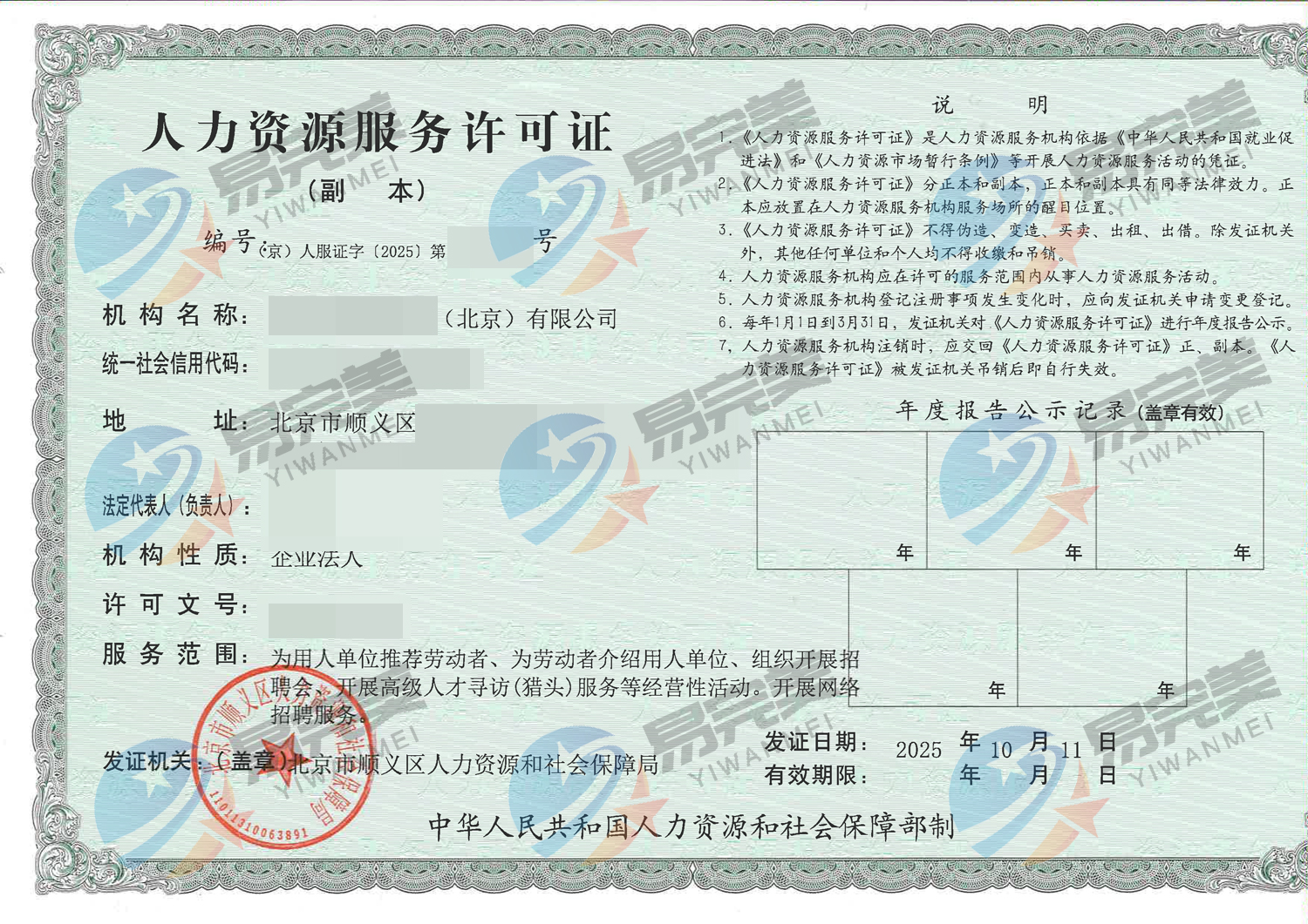 北京新下2025年10月11日人力资源服务许可证