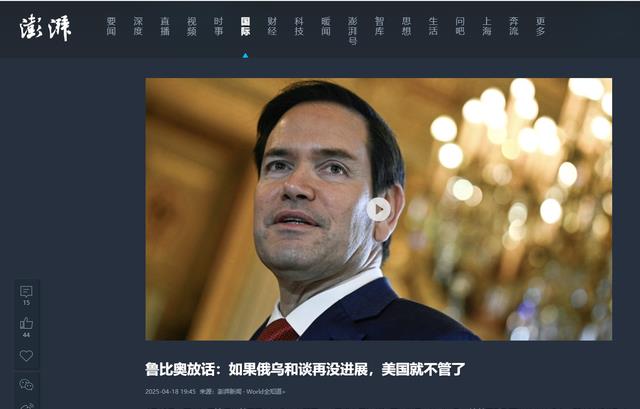 《鲁比奥放话:如果俄乌和谈再没进展,美国就不管了》——澎湃新闻