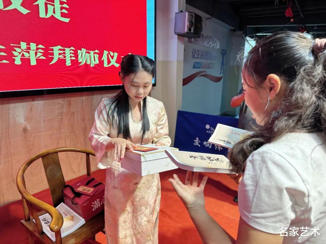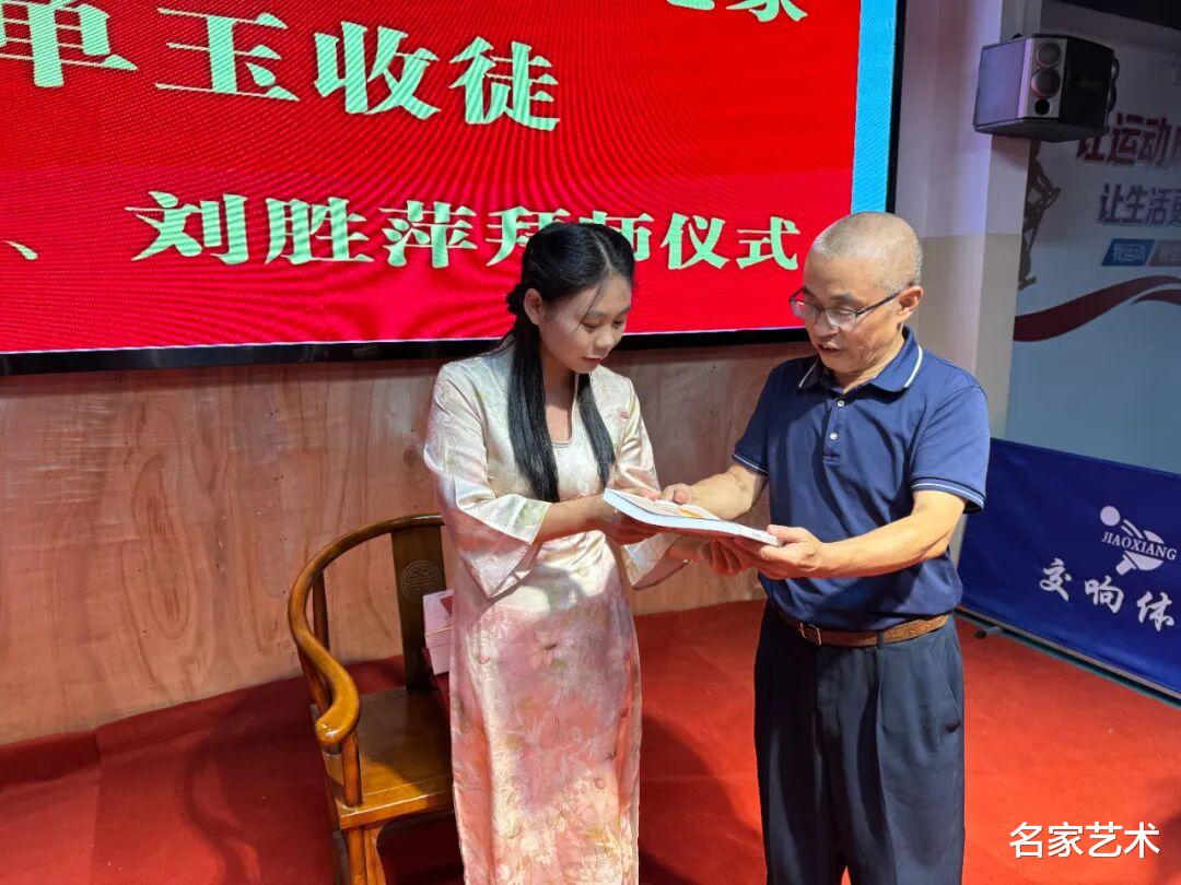 此次收徒,是单玉女士艺术生涯中具有里程碑意义的重要时刻。她秉持“以艺传道、以德育人”的理念,严格遴选两位品行端正、志趣高洁、热爱传统艺术的青年才俊——廖心赟与刘胜萍,正式纳入门墙。