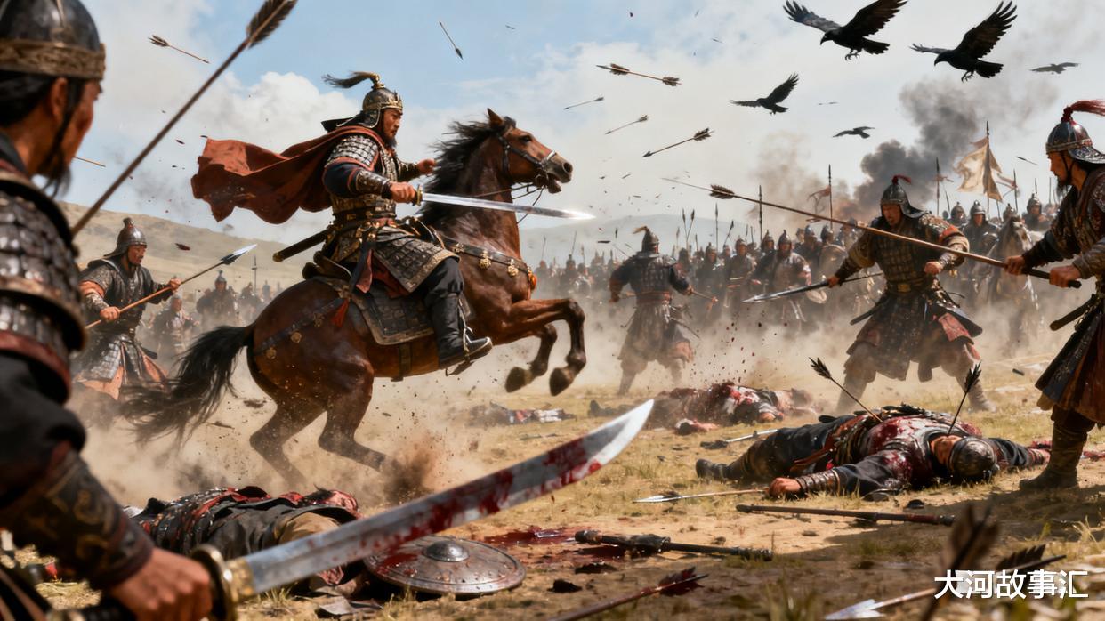 待突厥骑兵进入射程,他令旗一挥,预先布置的精锐骑兵分为两翼,如利剑出鞘,侧击敌军腰肋。同时,阵中强弩齐发,箭如飞蝗,射住敌军前锋。杨素亲率主力中军,如一道钢铁洪流,正面撞入了突厥骑阵!