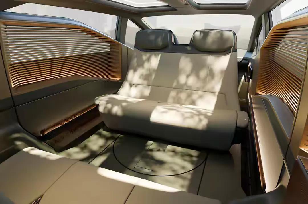 六轮所带来的优势对于这样一辆强调空间属性的概念车而言是显而易见的,后桥的两个小轮胎巧妙的把原来一个轮胎所要承载的质量一分为二,由此带来的结果就是后轮的轮包高度被大幅度的降低,结合上MPV的侧滑门以及现在电动车都越来越厚的底盘,这样的小轮包设计,基本上就不会再给车内的第三排产生什么不利的影响——基本上地板就是全平了。