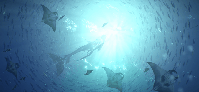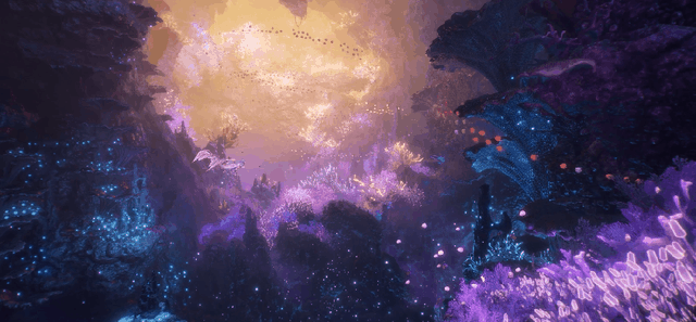 依据不同的水下深度拥有不同的景色风格,像是水流温暖,视野清晰的浅水区,周遭鱼群环绕焕发着勃勃生机。