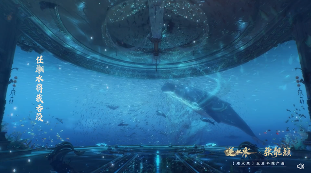 据了解这首《潮光》MV作为《逆水寒》五周年推广曲,主要描绘了即将加入游戏的水下世界和同名新流派“潮光”。