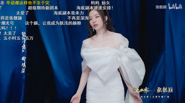 在张靓颖现场的《潮光》MV当中,她的歌声也随之变得更加的梦幻空灵,就仿佛游戏中的人鱼公主在吟唱一般。