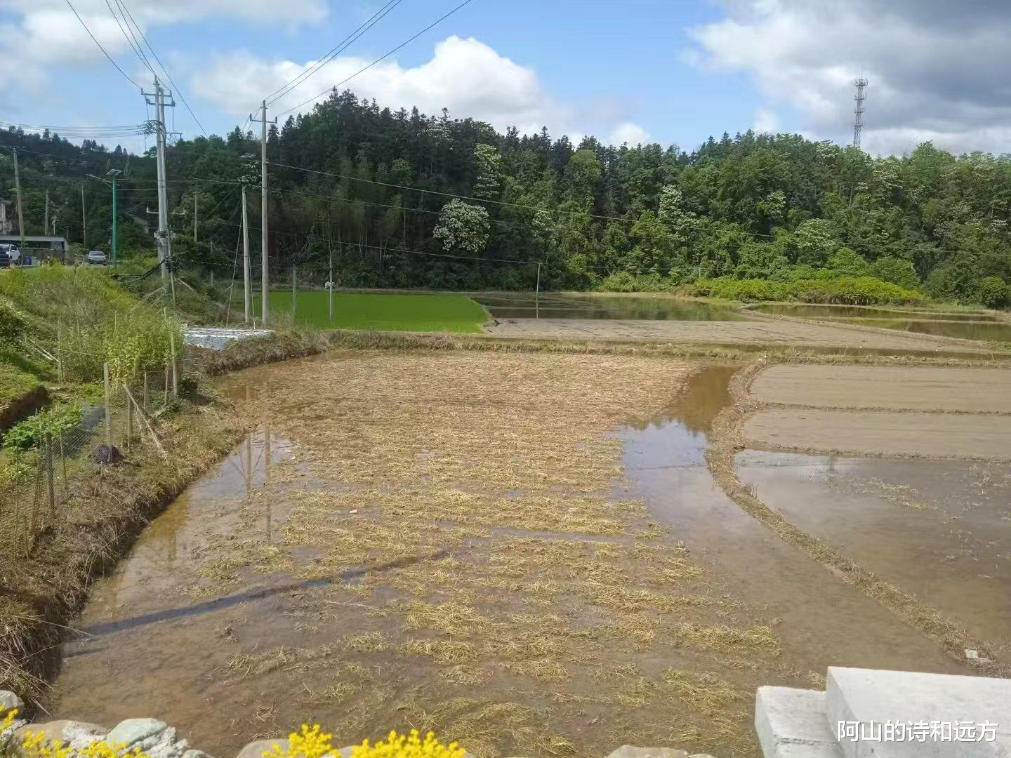 前面又出现开阔的大片水田,有的稻秧还未插上。