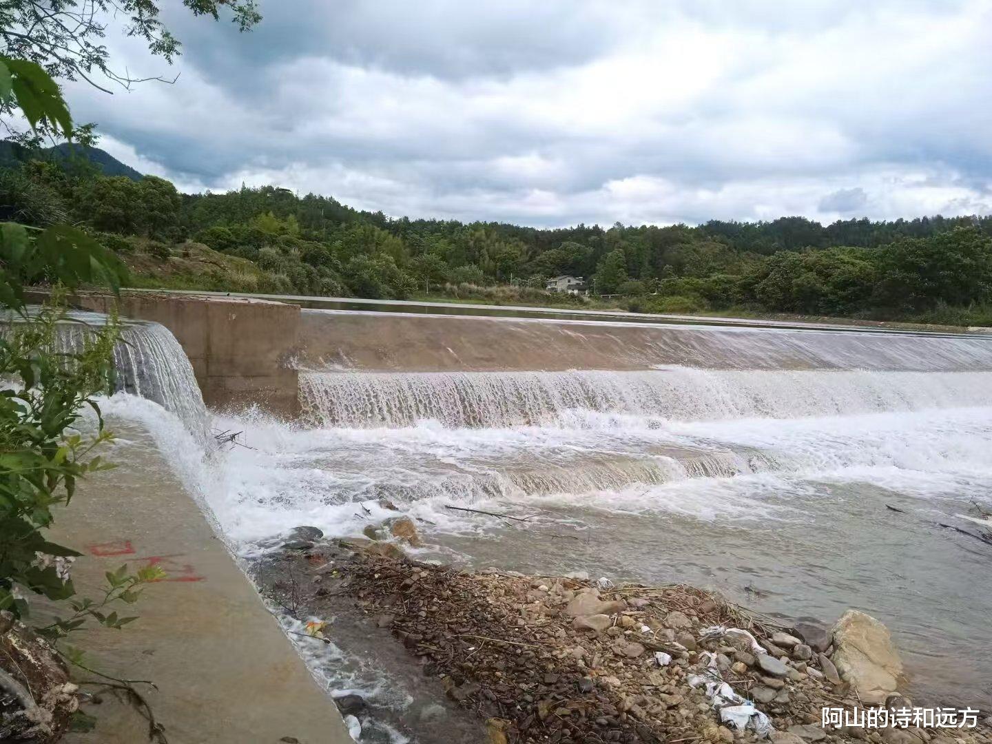 前面的坝上小桥只有十多米长,1966年10月10日通车的。不远处的河道上建了一座小型滚水坝,坝下落下一道白花花的瀑布。