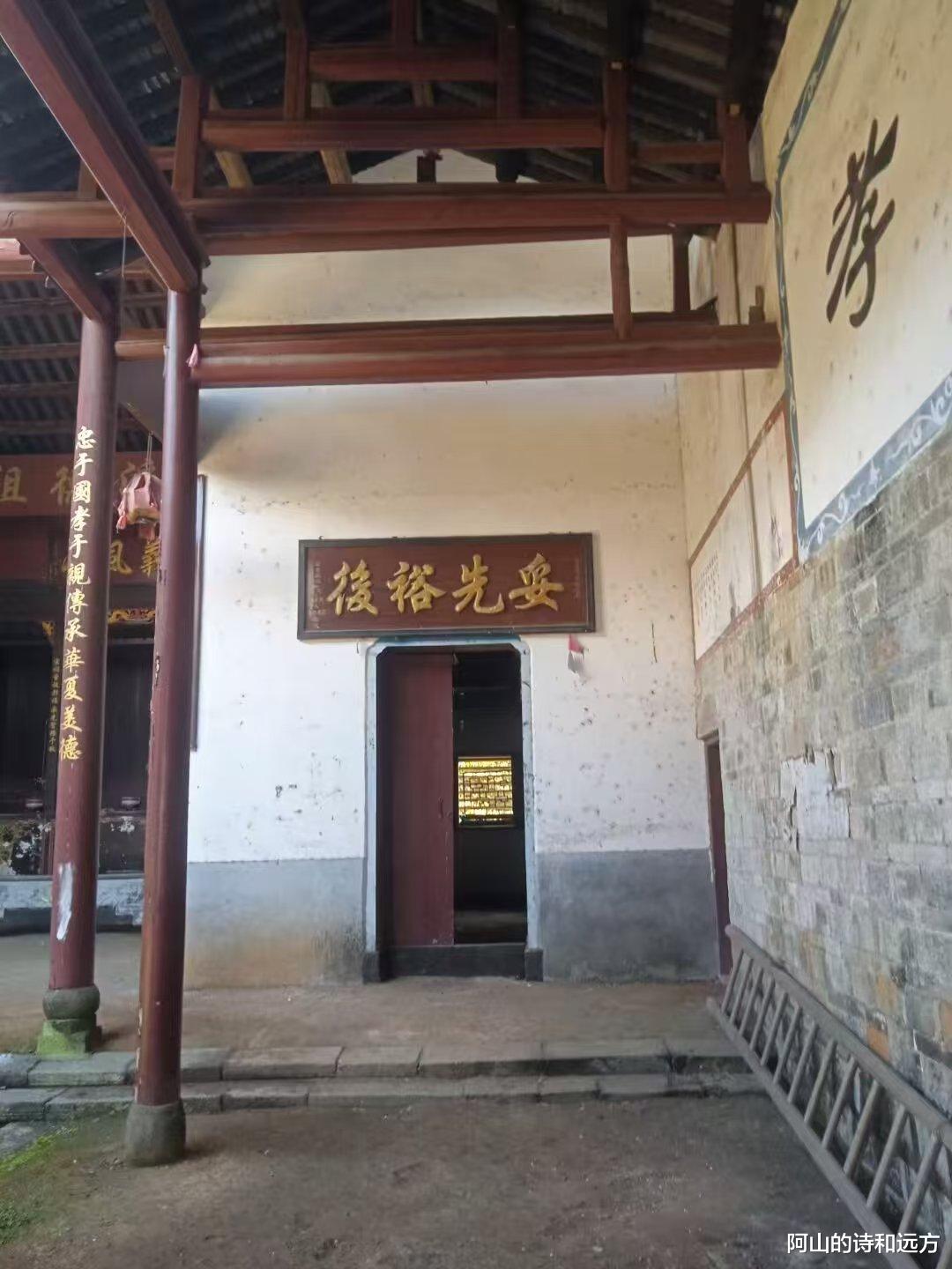 里面两扇门的上方各有一块匾,分别上书:妥先裕后,义韵千秋。