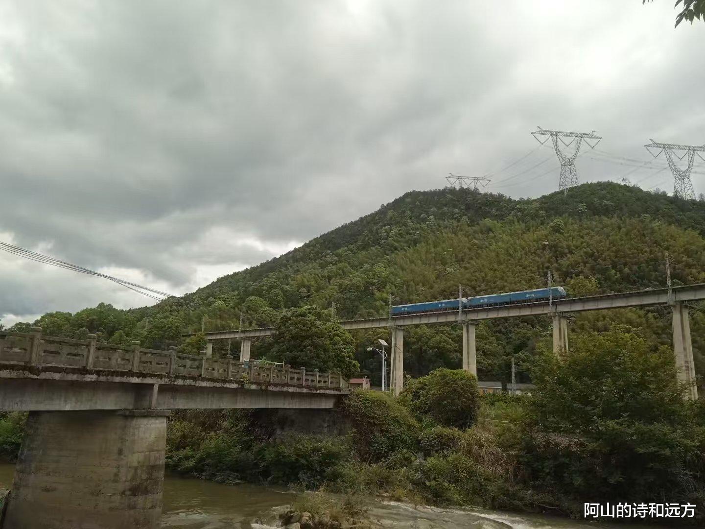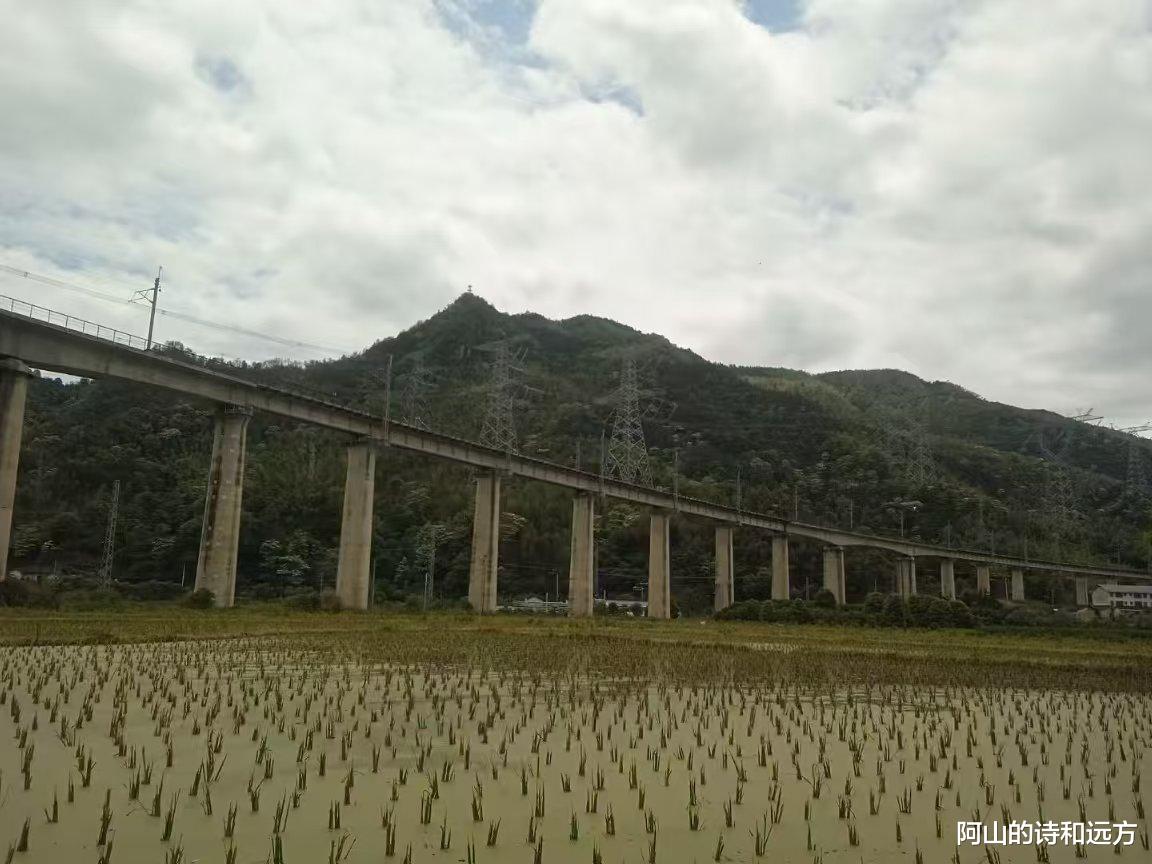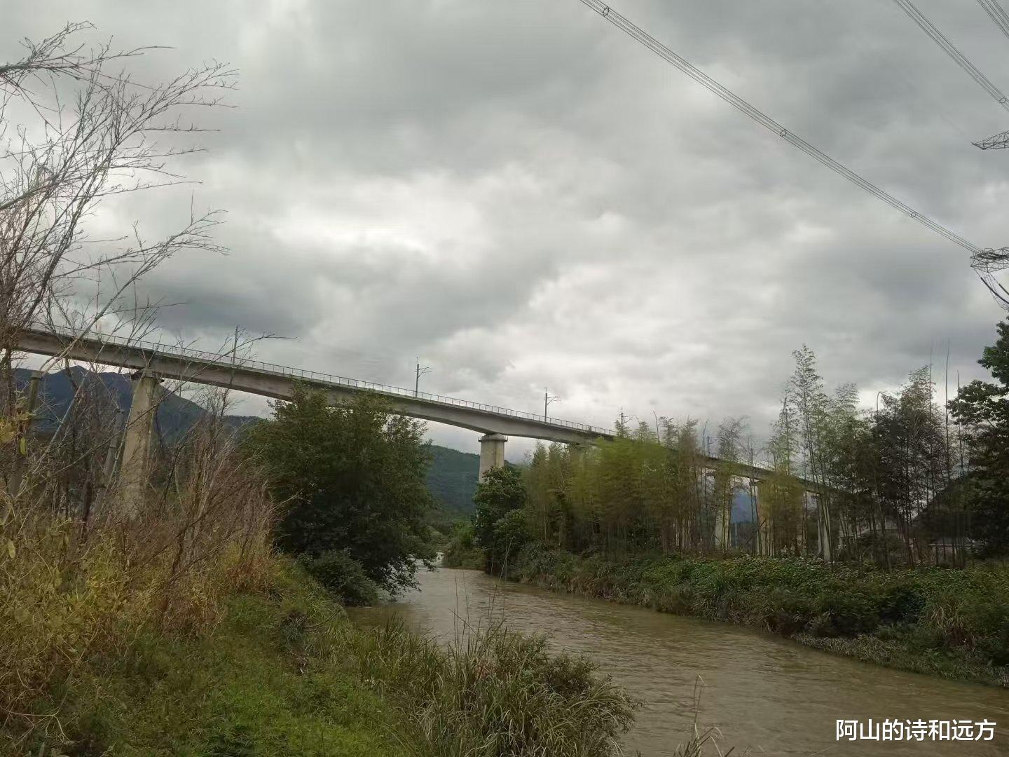 高架桥再次出现,穿山跨涧而来,跃过本不宽敞的小溪河,又再穿山越岭而远去。