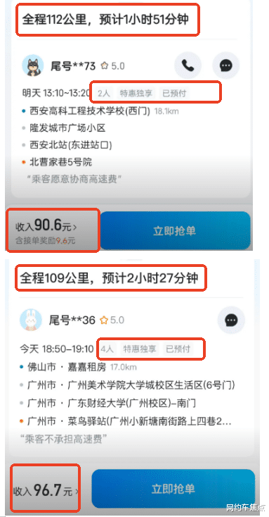 据了解,这类允许乘客自主选择途经点的多人乘车订单,总价并没有因为乘车人数的增加或途经点的设置而有合理调整,甚至出现了三四人独享订单的价格和单人独享订单价格差不多的情况,折算下来每公里费用还不到一块钱。