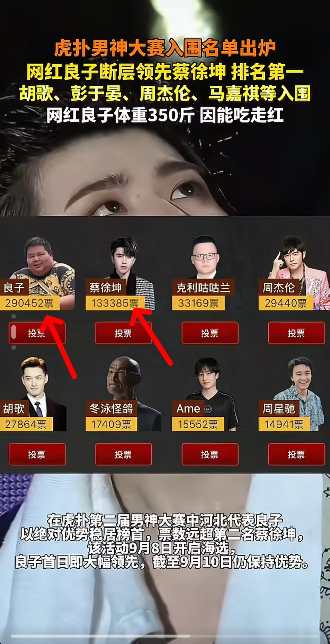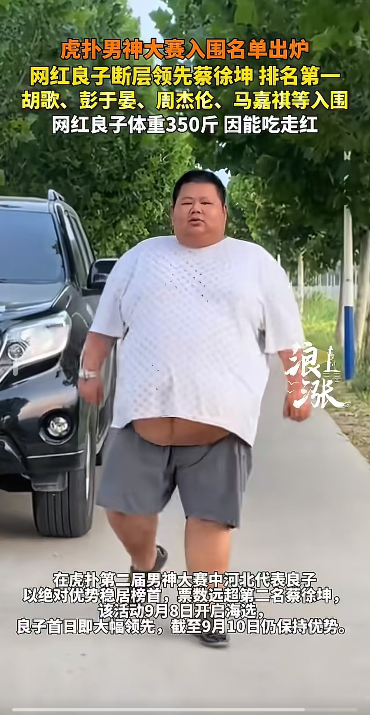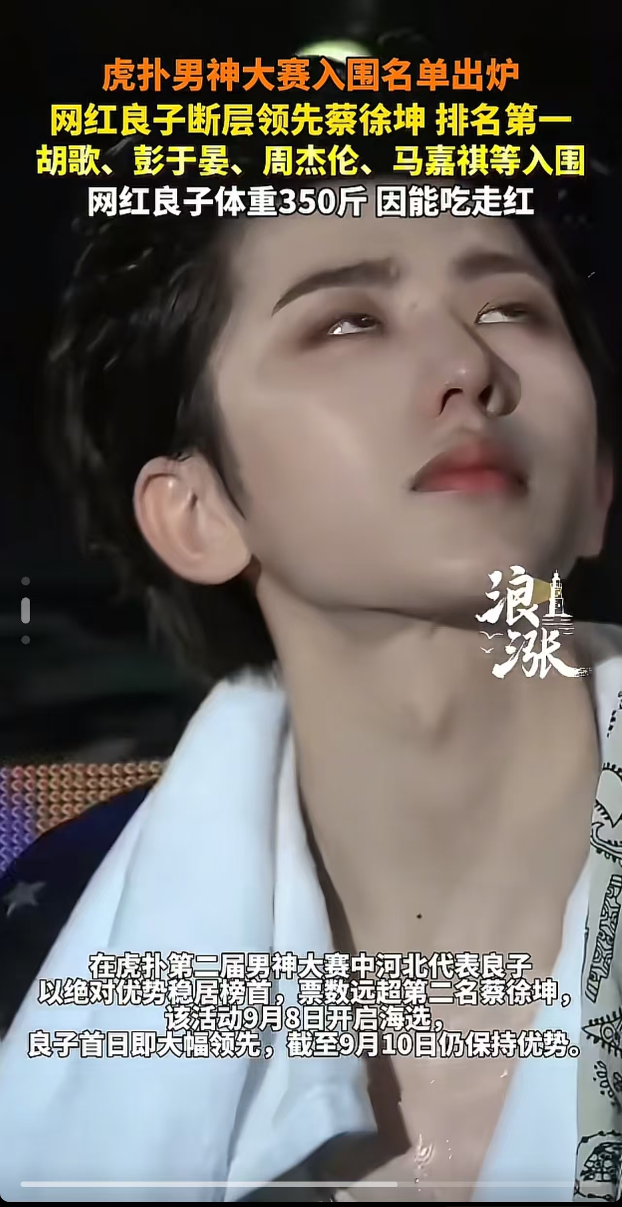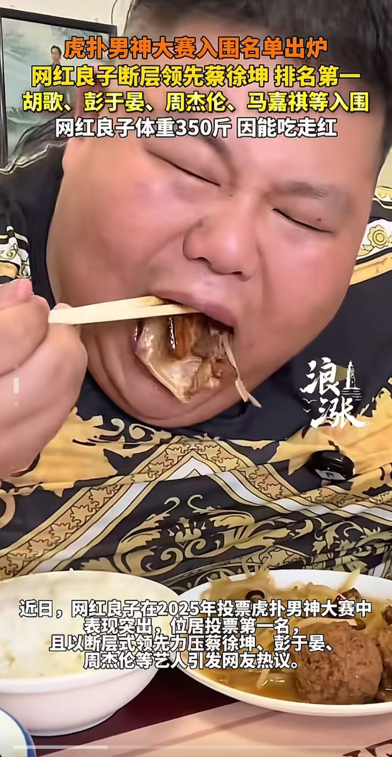 虎扑第二届男神大赛正掀起一场风暴——体重350斤的吃播网红良子,以绝对优势力压蔡徐坤、胡歌、彭于晏等传统意义上的顶级男神,稳居榜首。这场由大众投票主导的评选,其断层领先的结果绝非偶然,它撕开了当代审美变迁的一道裂口,更揭示出内容创作者不可错过的时代风口。