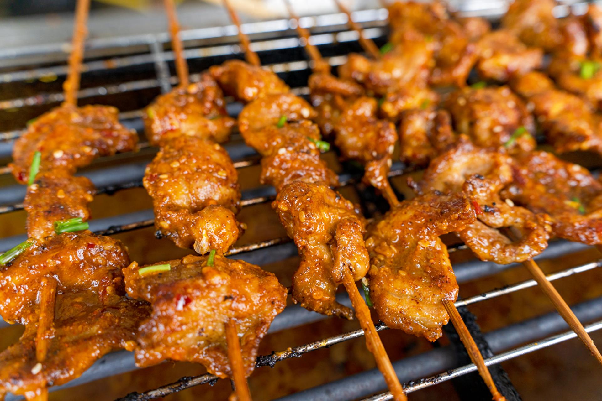 夜幕低垂,广西各地的夜市开始热闹起来。炭火引燃,动人美味渐渐弥漫在流动的人群里。烧烤师傅拿起刷子,蘸上特制果酱,熟练地在烤串上涂抹。