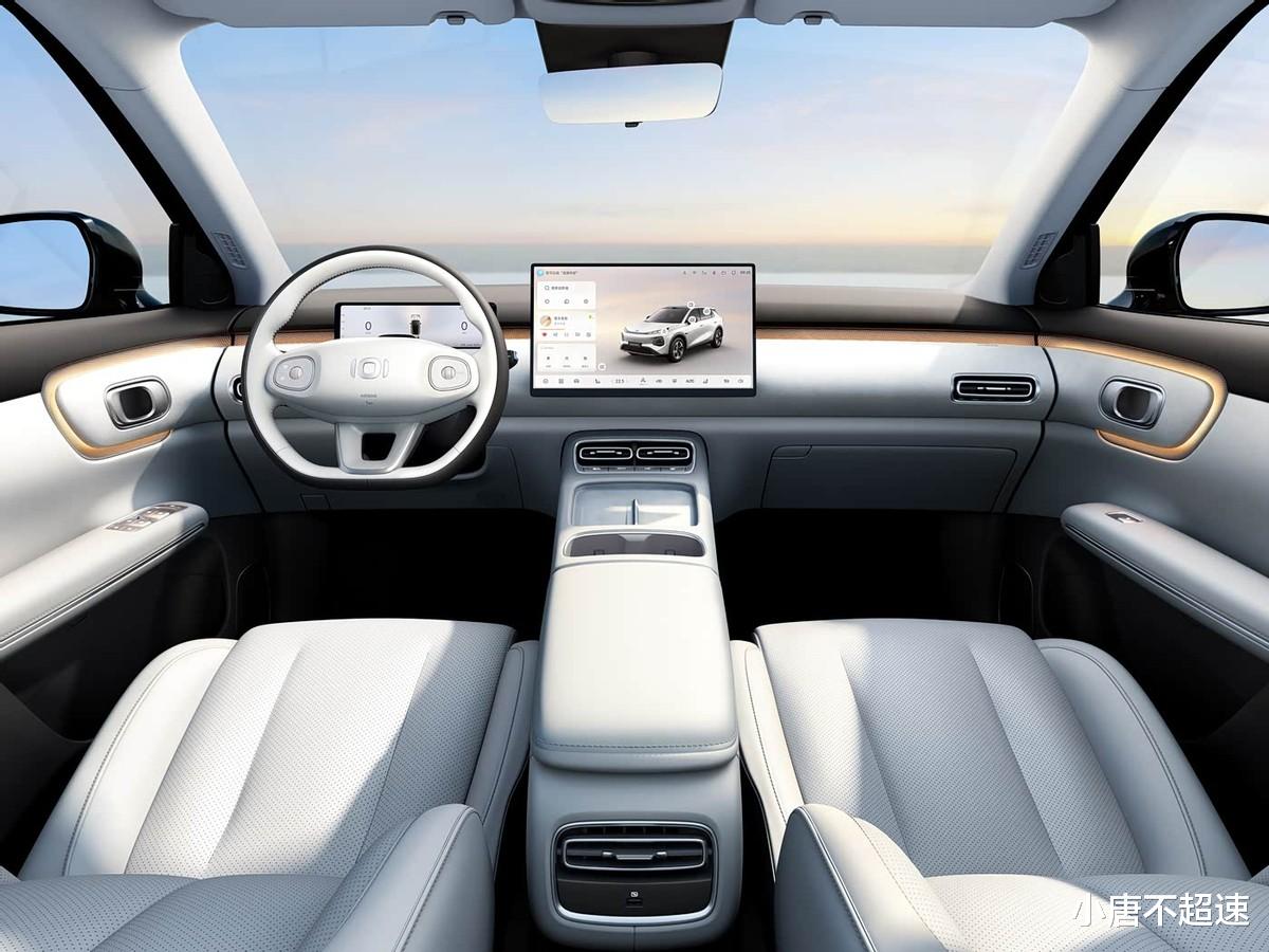 进入车内,全新Q05采用环抱式座舱设计,配备10.17英寸全液晶仪表和15.6英寸2.5K中控屏。车机系统搭载天枢智能座舱,采用4纳米车规级MT8676芯片,配备24G内存,支持5G网络和语音助手功能。在配置方面,新车提供了256色氛围灯、前排座椅通风加热按摩、副驾腿托、50瓦无线快充、全景天幕及电动尾门等实用功能。