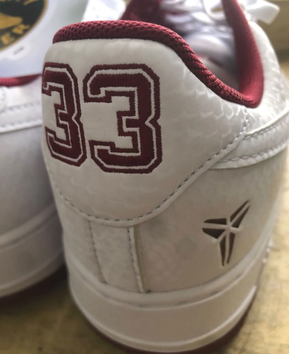 鞋履采用了较为清爽的白色与红色结合,鞋面的白色部分加入了蛇鳞元素,让整个鞋履呈现出了较为明显的Kobe Brand质感,这也是Kobe Bryant x Nike Air Force 1一直以来的巧妙设计;当然,鞋履鞋垫位置的Kobe Bryant签名元素也依然保留,完美的呈现了更多的Kobe元素。