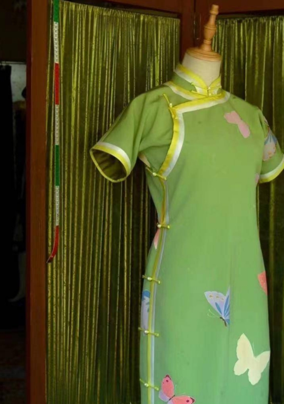 苏式旗袍的美,藏在那些被反复打磨的细节里。立领不是生硬的直线,而是带着恰到好处的弧度,既保留了东方女性的端庄,又不会勒得脖子发紧;盘扣更像件微型艺术品,蝴蝶扣的翅膀会随着动作轻颤,葫芦扣的藤蔓纹路里藏着吉祥寓意;至于面料,用的是苏州非遗工坊的双宫绸,在自然光下泛着珍珠般的光晕,摸起来滑而不腻,像捧着一泓流动的月光。