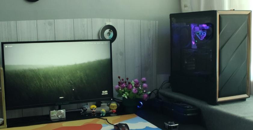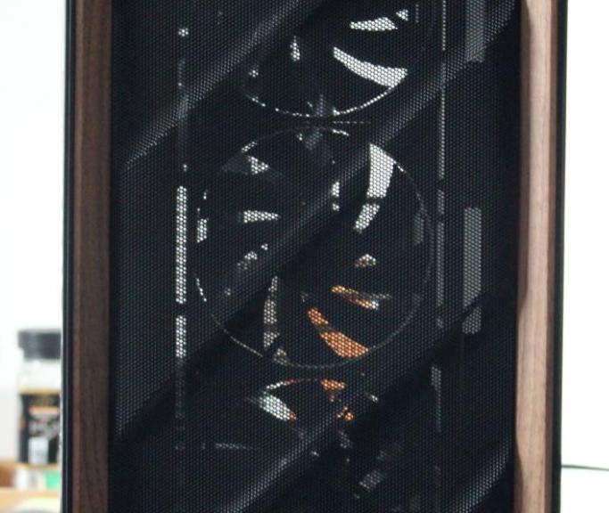 更巧的是面板细节,通过弧面与斜线的交错排布,让铁网堆叠出立体层次,不仅视觉上更有呼吸感,还悄悄提升了进风效率,真正做到 “颜值为实用服务”。这种设计让主机不再是突兀的电子设备,而是能自然融入书房、客厅的软装,木质纹理与家居环境相得益彰。机身则用 1.0mm 厚钢板打造,拿在手里能感受到扎实的分量,配合中塔尺寸,既保证了内部硬件的安装空间,又不会过于占用桌面,结构强度更是远超同价位常见的 0.6-0.8mm 薄钢板机型,长期使用也不用担心变形。