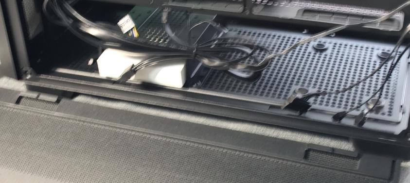 在此基础上,FLUX 还打造了专属安钛克的双风道:水平方向,前进 3×120mm、后出 1×140mm PWM 风扇形成主气流,冷空气经前面板网孔吸入,依次冲刷内存、主板、CPU 水冷,再由尾部风扇强力排出;垂直方向更具巧思,电源仓上方预装 120mm 反叶风扇,专门对着显卡背部吹风,精准解决传统机箱显卡 PCB 背面与供电模块 “闷烧” 的痛点。这套组合拳下,室温 30℃双烤(CPU+GPU 高负载)时,硬件温度升幅仅 2-3℃,彻底告别了 “闷罐效应”,连显卡温度都能明显压下来。