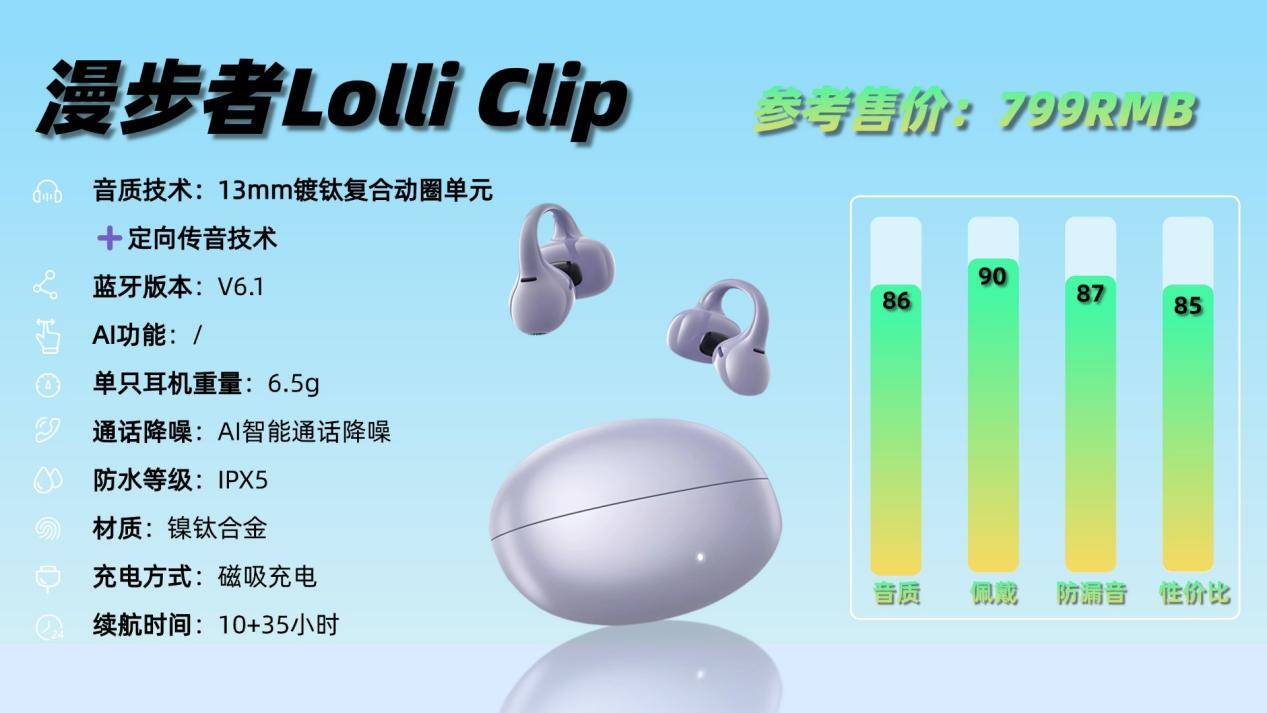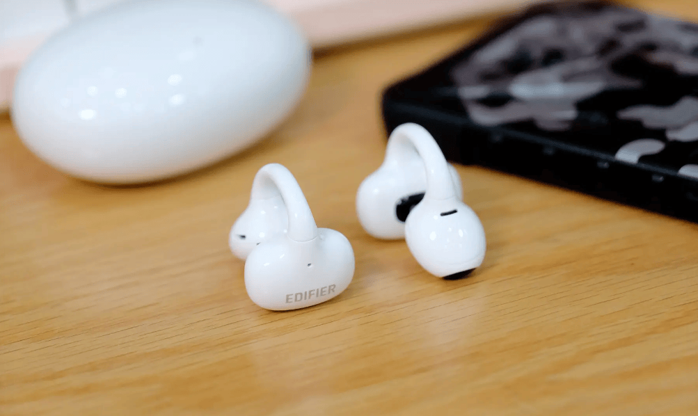漫步者LolliClip做工精致、体积小巧,产品形态介于半入耳式与耳夹式之间,佩戴稳固舒适,几乎能适配所有耳型。采用左右耳对称设计,无需区分主副耳,放回充电仓的操作便捷,日常使用顺手自然。