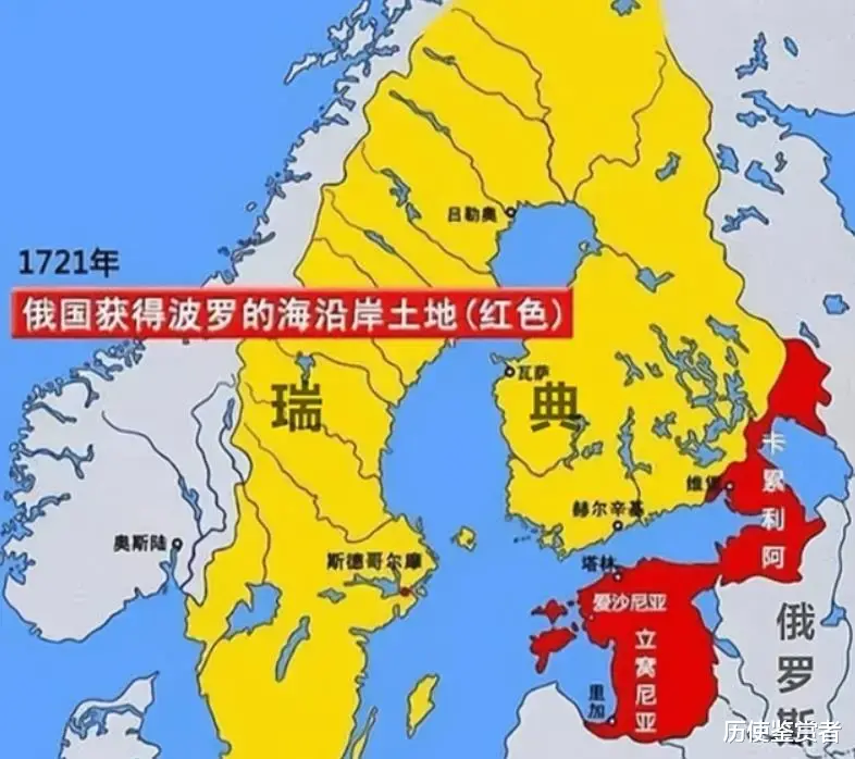 1721年,在经历了大北方战争后,沙俄击败了瑞典,夺走了圣彼得堡、爱沙尼亚、拉脱维亚以及维堡等地。1743年,第六次俄瑞战争后,瑞典再次将基米河以东的地盘全部割让给了沙俄。1809年,瑞典在第七次俄瑞战争中再次战败,最终将芬兰全部割让给了沙俄。