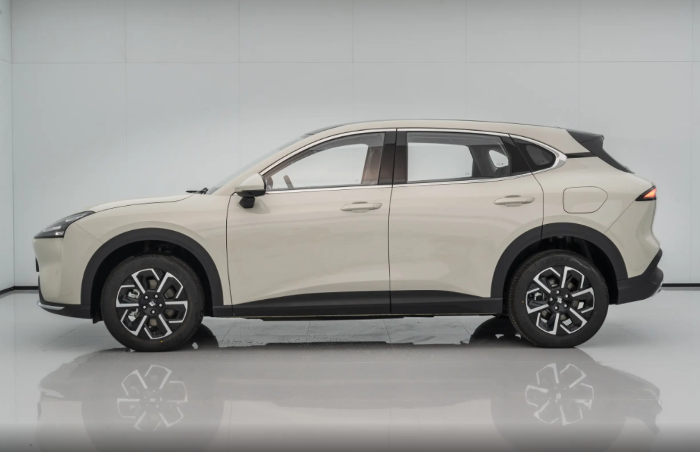 侧身设计上,全新宝骏E6同样给人一种较为圆润的感觉,而且门把手也是传统的门把手设计,其实这个设计还是比较贴心的,毕竟该车主要针对的是网约车市场,常常需要去接客户的,而传统门把手对于用户而言,没有什么学习成本,要是隐藏式的门把手,客户一时半会打不开车门的话,那显然还是比较尴尬的。轮毂方面,全新宝骏E6同样采用了运动风格的轮毂造型,这也让车辆整体多出了较强的运动属性。