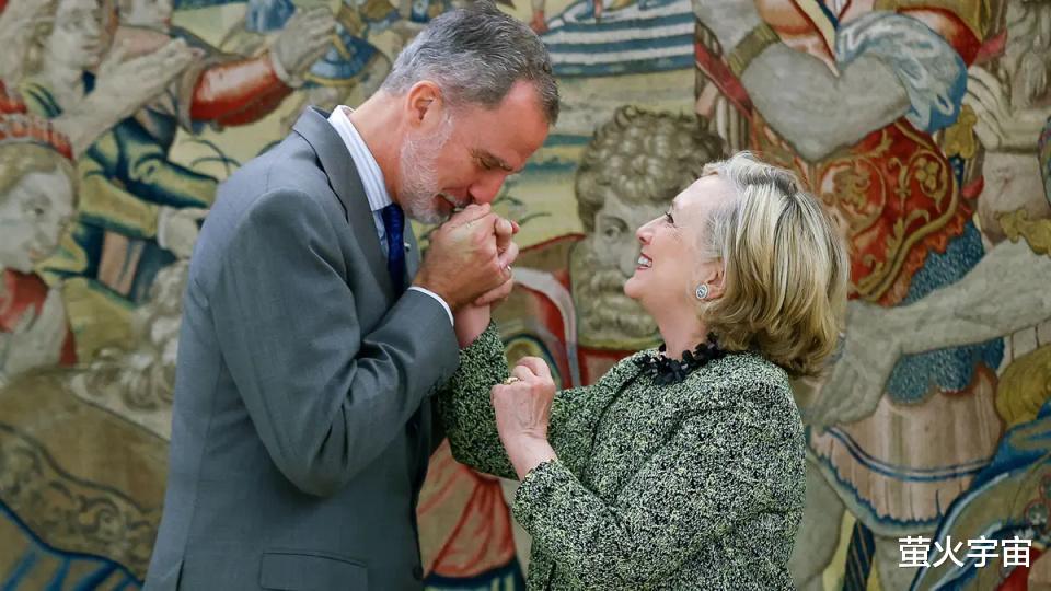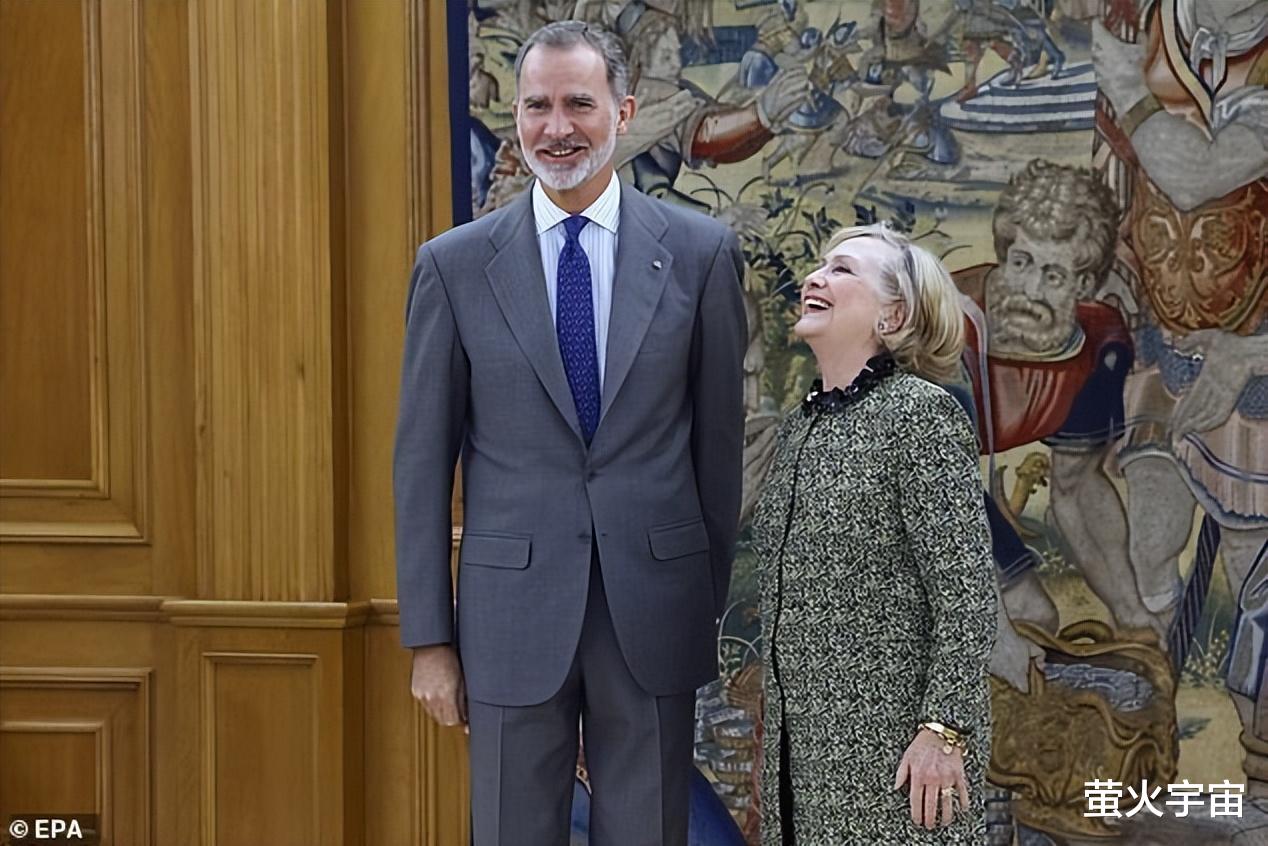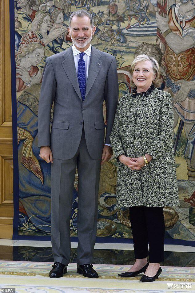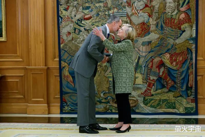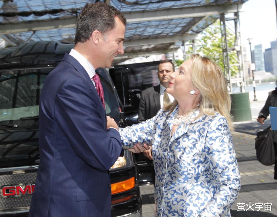据报道称,希拉里先于西班牙国王抵达会客的房间,而费利佩见到她时也是立即展现出热情友好的姿态。