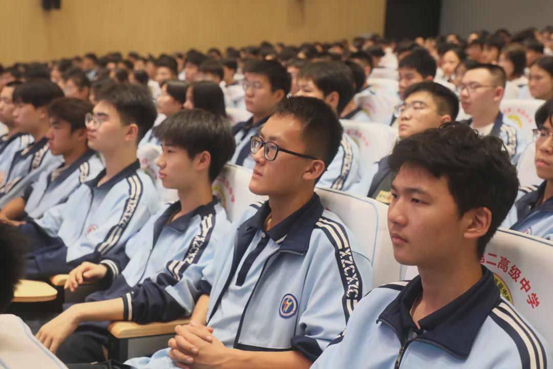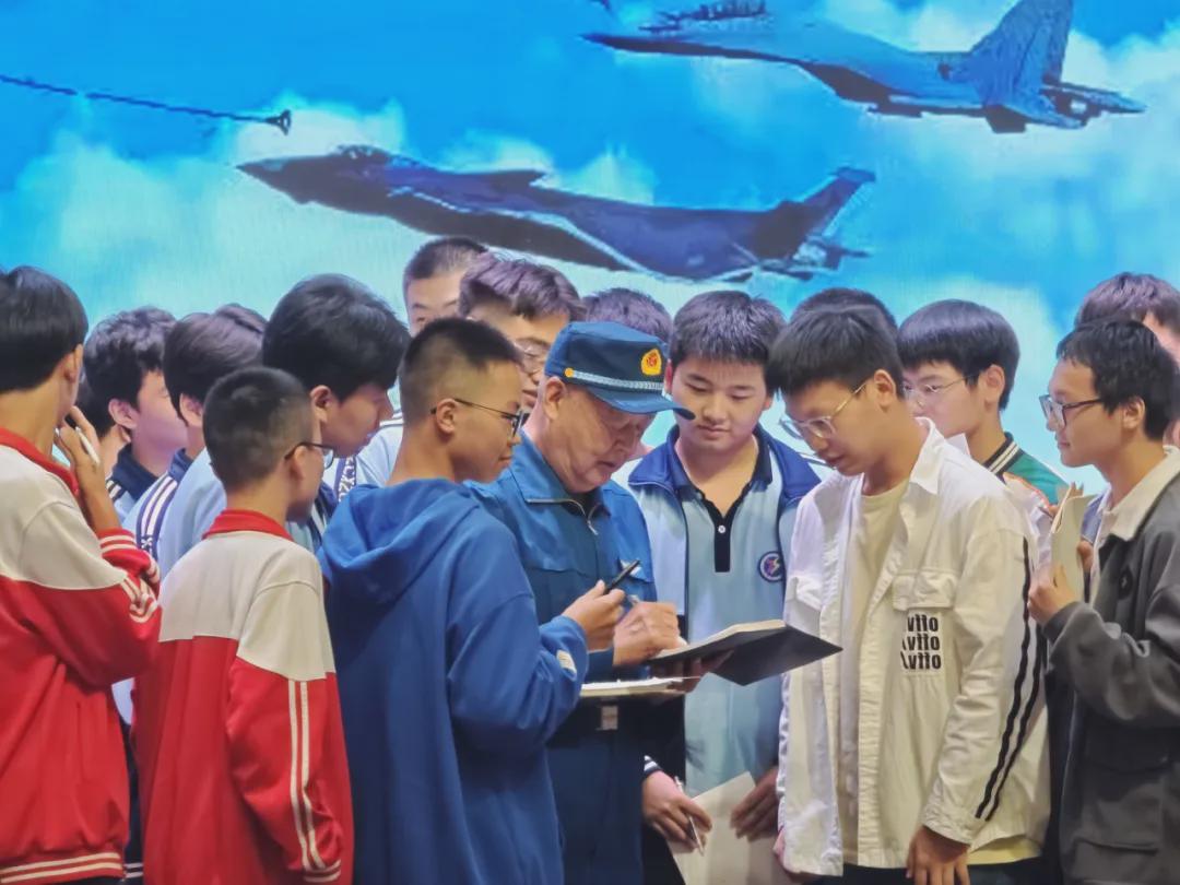 在互动环节,学生们踊跃提问,与潘双陆大校就飞行员的心理素质、空军招飞要求以及个人理想与家国情怀的关系等话题进行了深入交流。潘双陆大校寄语同学们:“希望你们抓住时代机遇,科学有效地读书,像烟花一样,绽放出自己最绚烂的时刻,为实现中华民族伟大复兴的目标贡献力量。”