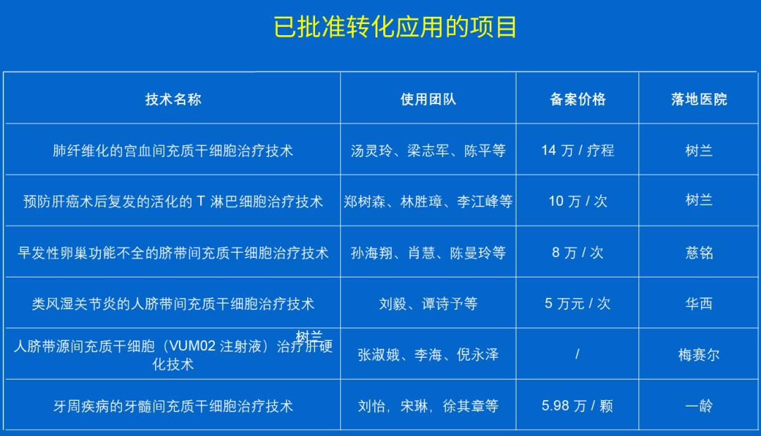 部分已公布项目价格信息脐带间充质干细胞注射液治疗膝骨关节炎技术:3.6万元/次