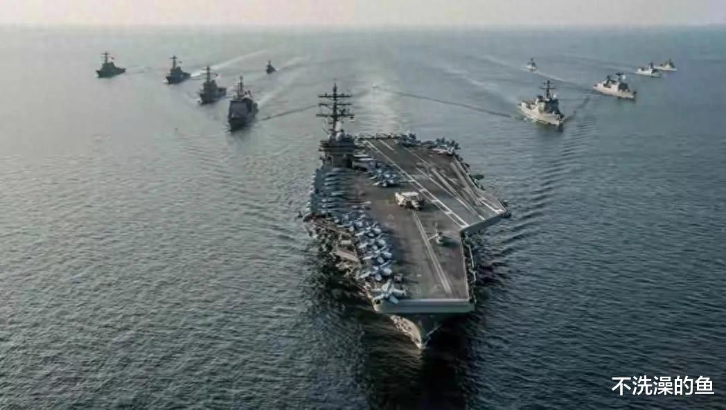 美国海军一个航母战斗群的标准配置,由一艘航空母舰为核心,同时配以一艘提康德罗加级巡洋舰,至少两艘阿利伯克级驱逐舰,至少一艘攻击型核潜艇,以及一艘补给舰。