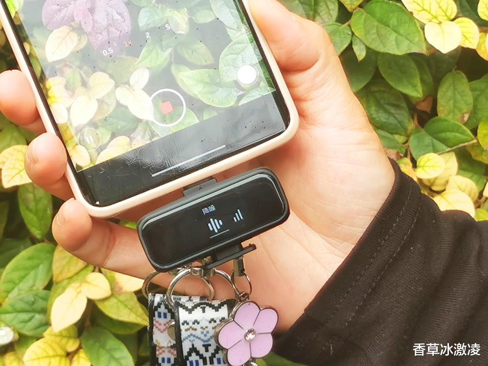 它的麦克风本体做得像枚精致纽扣,磨砂 ABS 材质摸起来很细腻,除了夹之外,它还支持磁吸,这样固定在衣服上几乎隐形,而且很稳,即使跑步也不容易滑落。