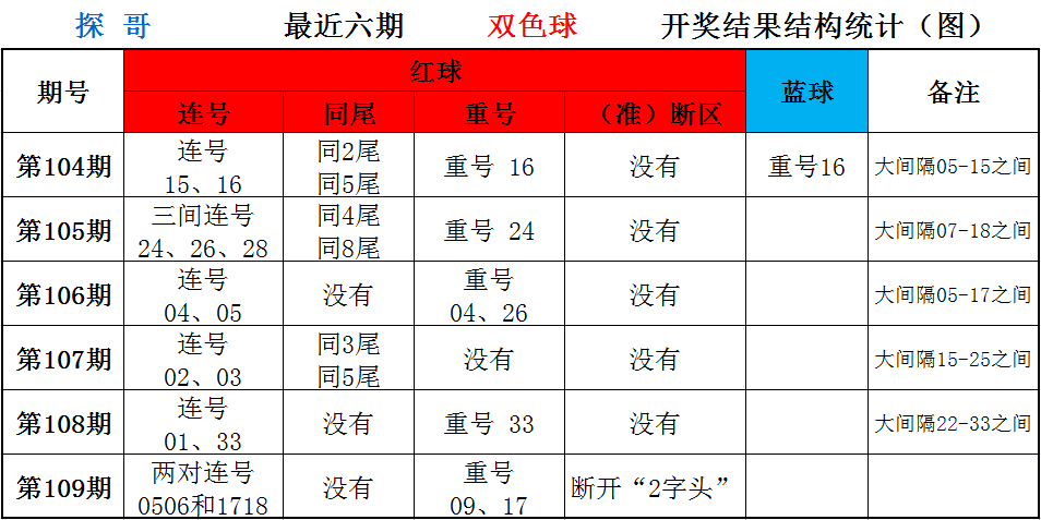开奖号码结构:红球两对连号05、06和17、18,没有同尾,重号09、17,断开“2字头”。