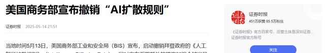第三点,美国商务部在5月13日宣布:将撤销拜登政府遗留的《人工智能扩散规则》,同时加强对全球半导体的出口管制。