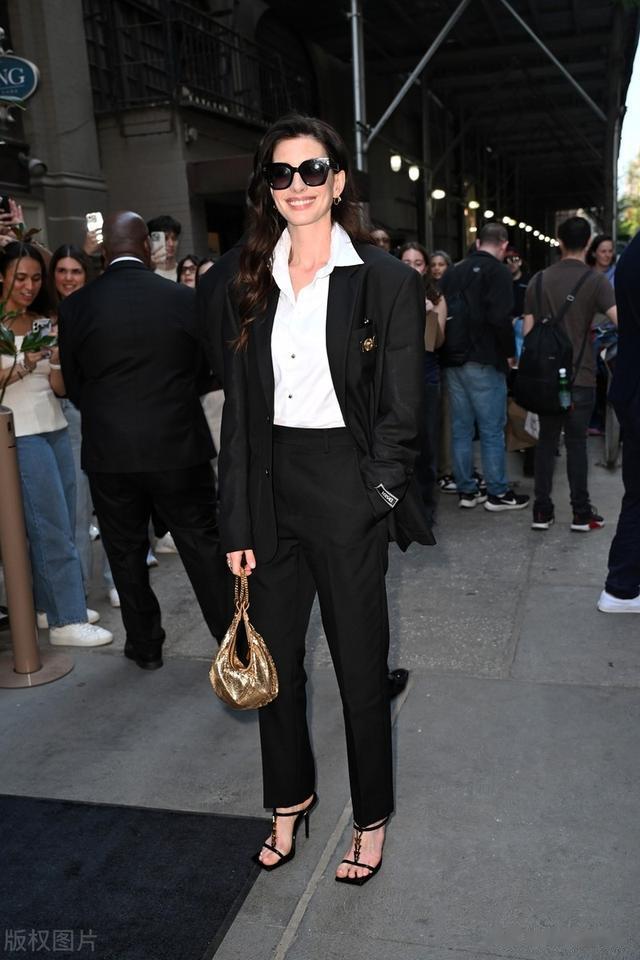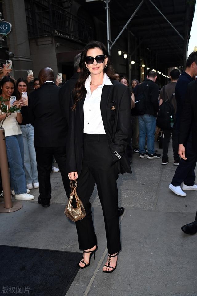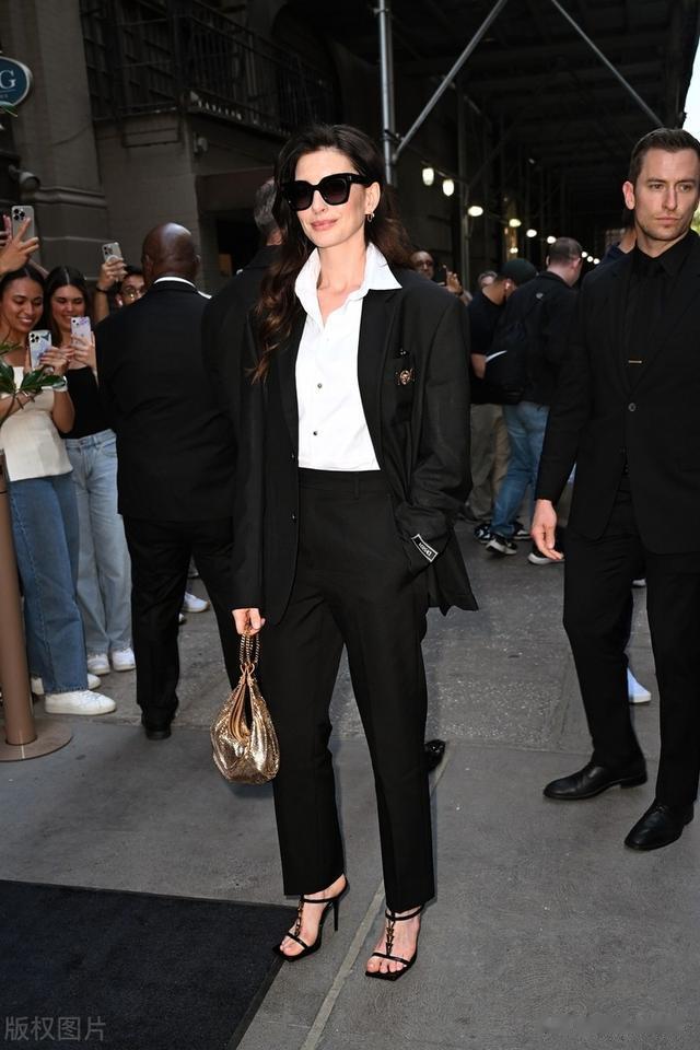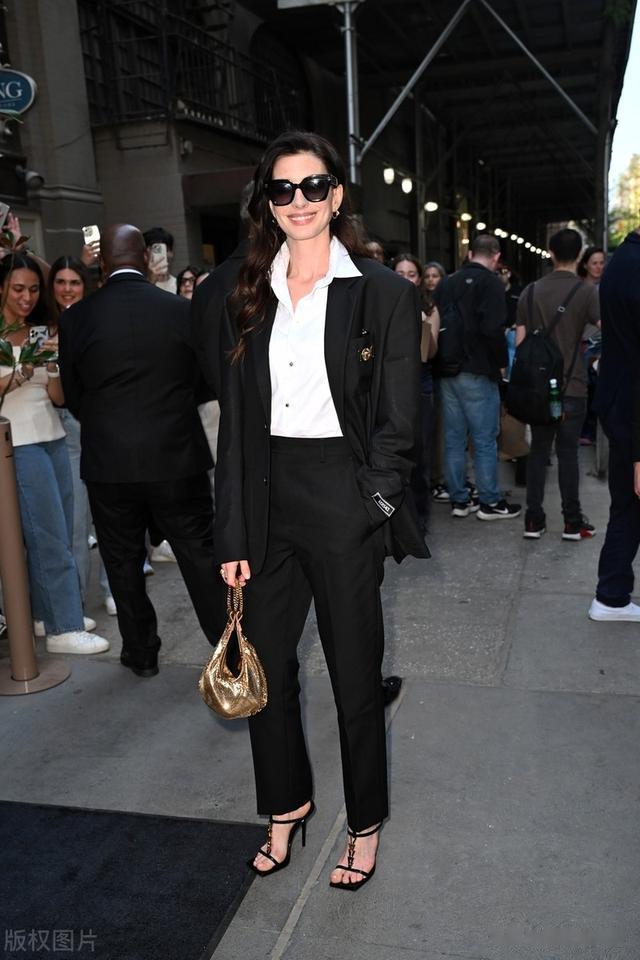 安妮海瑟薇西服套装参加活动,干练潇洒