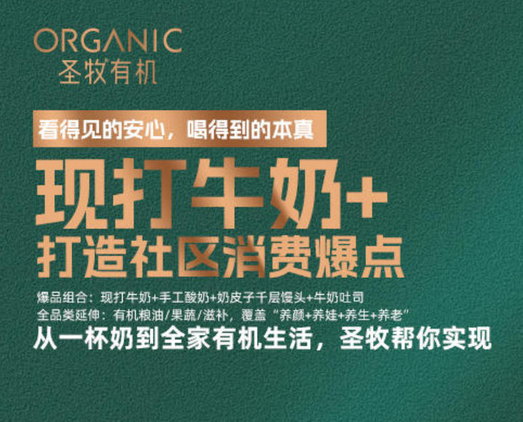 以“现打有机奶+”为核心引流爆品,构建“高频引流-多品类复购-会员裂变”的盈利闭环,同步以圣牧有机牧场为核心溯源地,将有机文旅转化为“可触摸的有机信任场景”,全面满足社区家庭“日常消费+健康需求+体验服务”的多元场景。