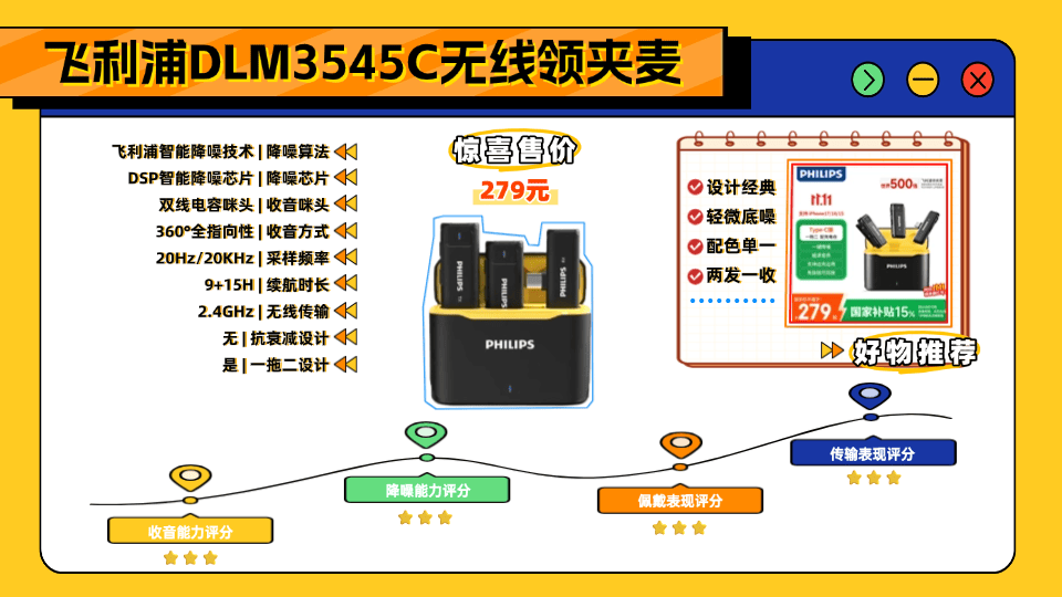四、飞 利浦DLM3545C无线领夹麦克风