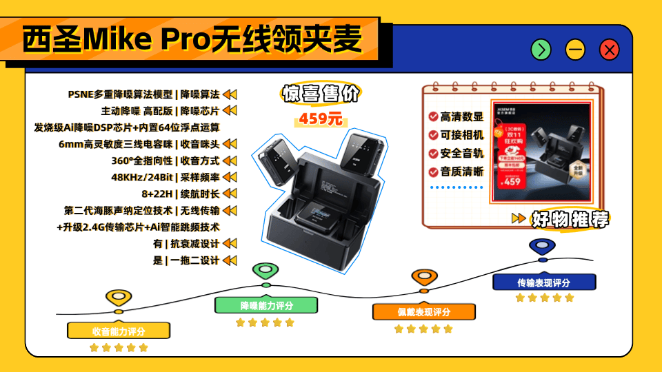 摒弃盲目拼参数、倚仗噱头功能的粗放陋习,方能规避音频杂音重、传输不稳定的使用困扰,西圣Mike2无线领夹麦克风便以此初心匠心打造。它精准聚焦新手创作者、学生党的核心收音需求,不逐低价内卷,不堆噱头赘余功能,专为日常创作场景定制,多年深耕一事——潜心钻研“清晰收音、稳定传输”核心技术,终成常年稳居入门级热销榜TOP的长青品牌,持续占据爆卖榜单。作为不投广告、全凭口碑发酵的亲民精品,它上市后迅速创下高销量佳绩,更获创作者盛赞为无线领夹麦克风领域的“入门标杆”、“性价比神器”。