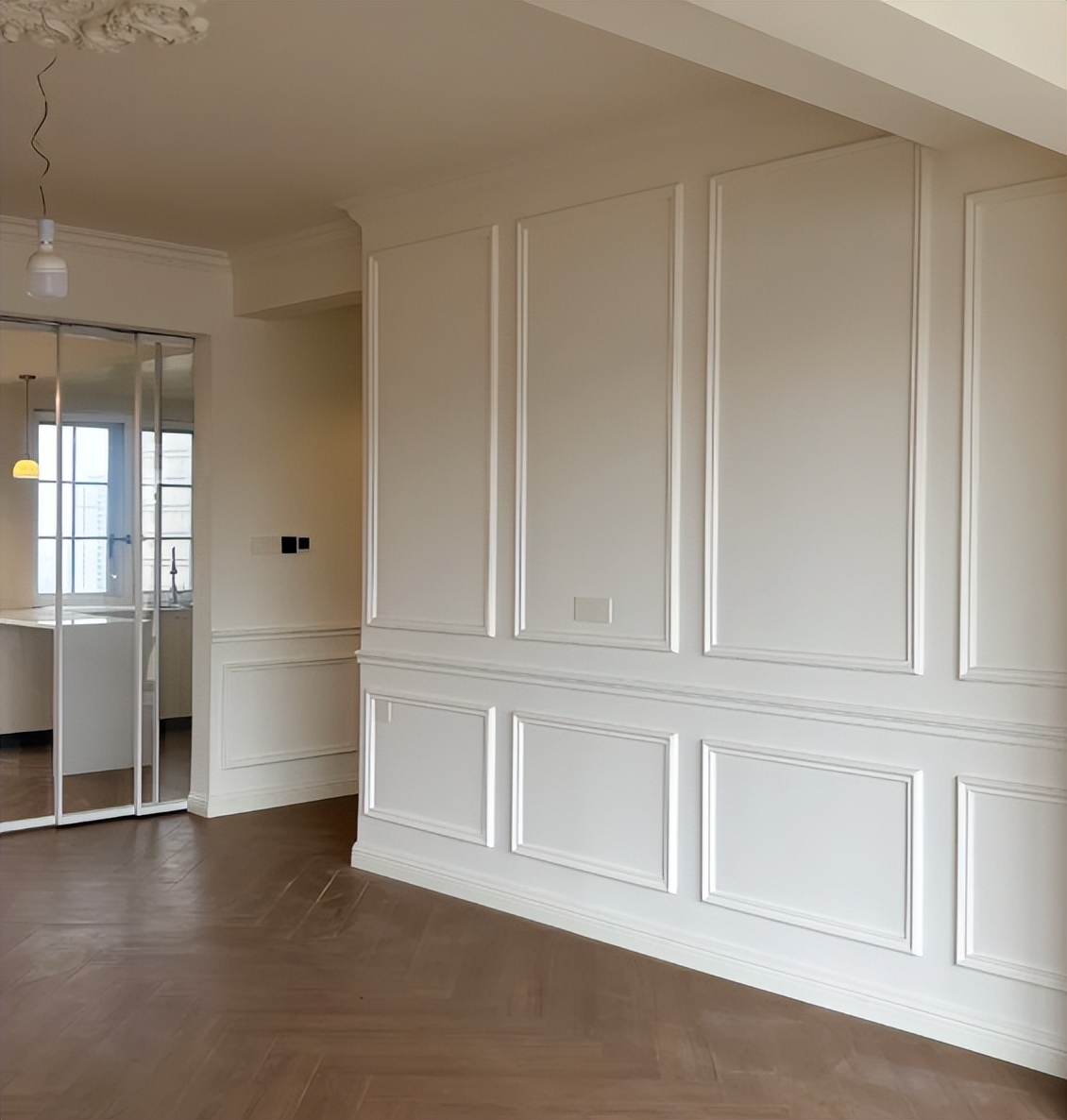 我家装修的时候,特别喜欢法式复古的风格,所以装修的时候在墙上做了很多石膏线。