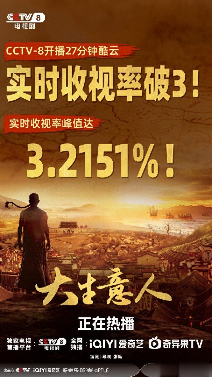 今晚陈晓的新剧《大生意人》在央视八套首播,大伙儿看了吗?这部剧开播30分钟,酷云就破三了,是央八历史上最快破三的剧,不得不说,这个成绩实在耀眼!