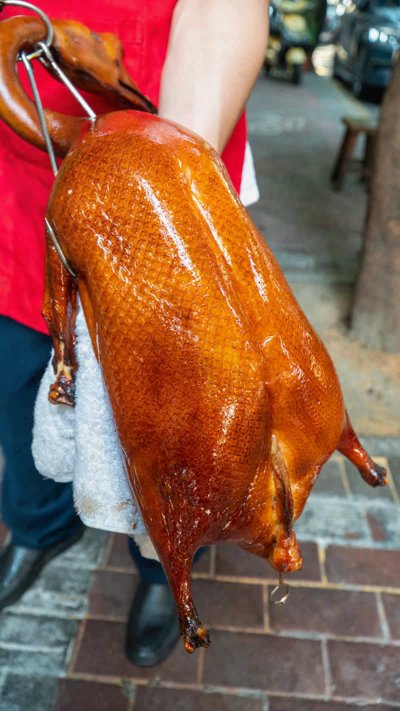 其实去油有高招——高温炙烤就是烧鹅界的"瘦身仪",能把肥油逼得原形毕露。经过这番"魔鬼训练",烧鹅立马从油腻大叔变身清爽小生,连皮带肉都透着股利落劲儿。