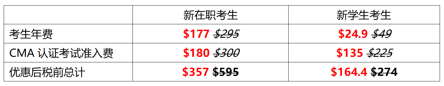 此优惠只针对首次加入的在职考生及学生考生类别,对考生续费与已经报名参加CMA项目的考无效。