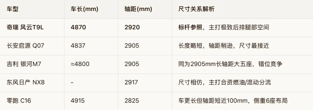毕竟,作为主打家用定位的五座插混SUV,风云T9L在产品力上必须做到“既要又要”。同级细分市场里,率先出招的比亚迪吉利和长安也是个顶个的“实力派”玩家,如果在产品力上存在明显短板,要玩转这个细分市场绝无可能。