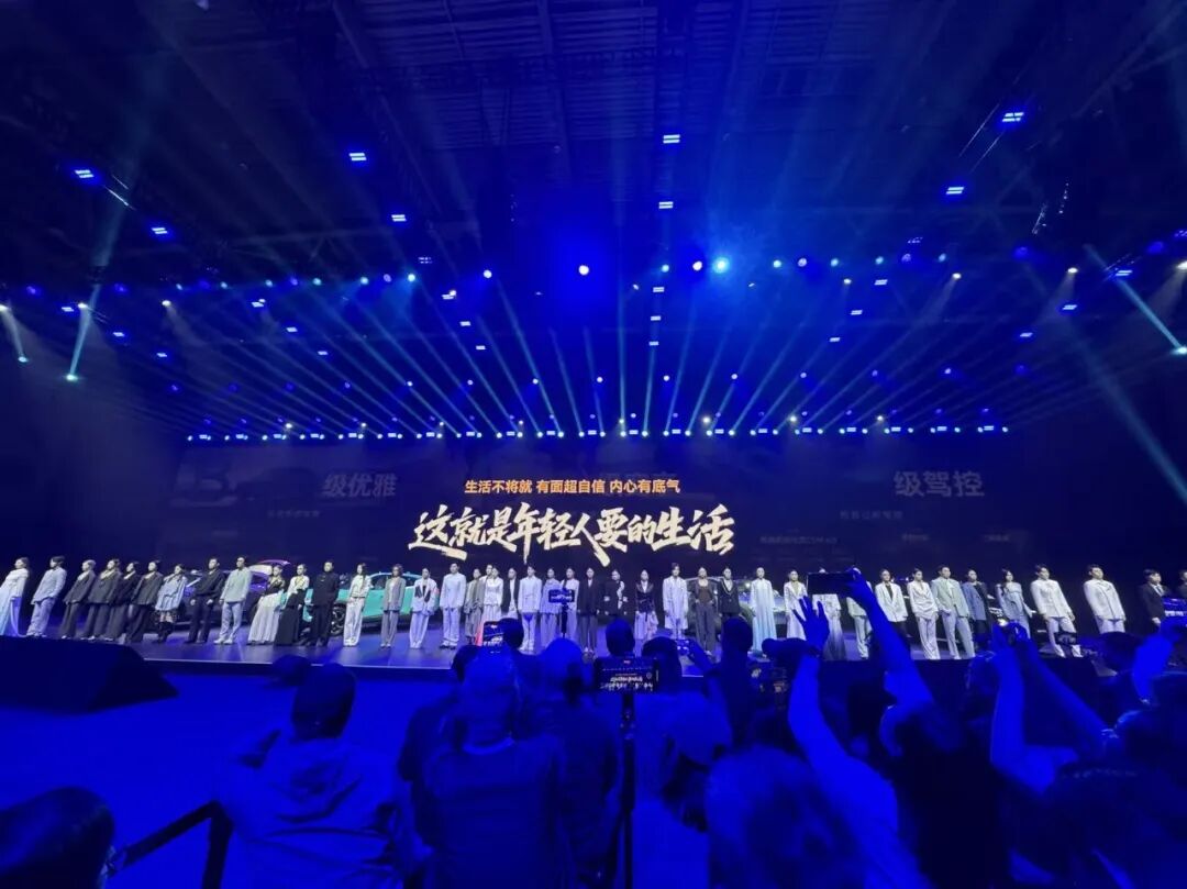 当晚发布会的高潮,不是奇瑞高层官宣新车售价,而是一场由45名大长腿模特的登场“T台秀”。在新车售价发布前,四台颜色各异的风云T9L在一段节激昂的登场音乐伴奏下,缓缓从后台驶向舞台中央一字摆开,车辆停下后不久,45名模特陆续从车里走下,并立即开始一场“走秀”。