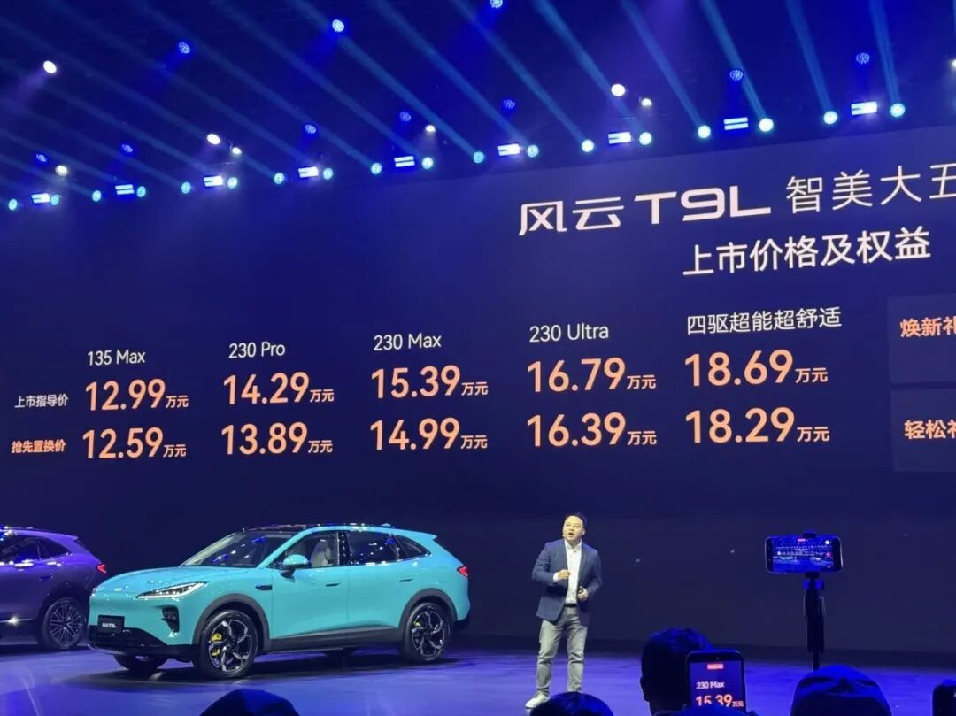 4月13日晚,定位“智美大五坐”的奇瑞风云T9L正式官宣上市,新车共推出5款版型,官方指导价12.99万元-18.69万元。当晚发布会的主题是“引领空间革命”,看得出来,奇瑞希望在“智美”产品的卖点上,再加上“大空间”。
