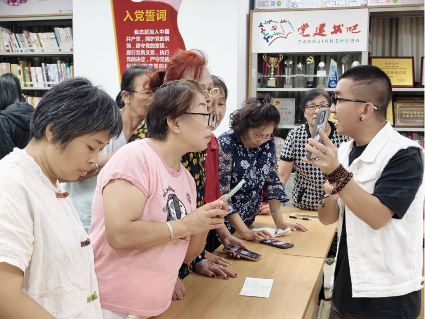 活动伊始,工作人员带领长者共同回顾了前期开展的手机拍摄的技巧,不少纷纷举手回应,分享过往拍摄的生活片段与节日记忆,瞬间调动起强烈的学习热情。活动核心内容是聚焦视频拍摄运镜技能,刘老师结合长者学习特点,以通俗易懂的语言讲解9种实用运镜方法。“推镜从远及近,适合视频开头突出主体,比如拍摄社区图书时,用推镜能清晰展现书籍细节”“拉镜则相反,从近到远,结尾用它能展现社区活动全景,让画面更有纵深感”,讲师边演示边举例,还针对建筑、大场景拍摄推荐“摇镜”,人物互动场景建议“移镜”,低角度拍摄小物件时分享“蚂蚁视角”运镜技巧。