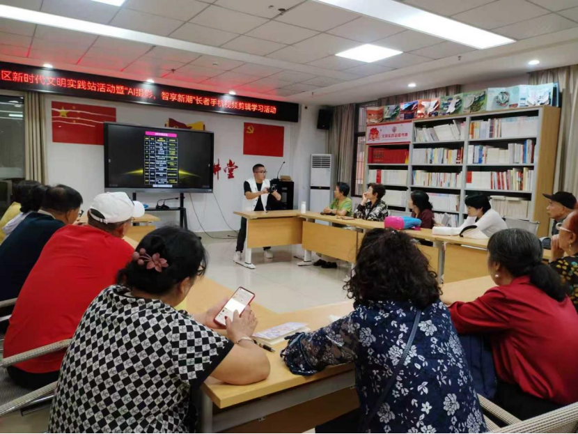 岁岁重阳,今又重阳。为丰富社区长者精神文化生活,助力长者跨越“数字鸿沟”,共享智能时代便利。近日,社区党群服务中心组织了一场“AI摄影,智享新潮”长者手机视频剪辑活动。本次活动特邀辖区传媒公司资深讲师授课,吸引了25名社区长者踊跃参与,现场学习氛围浓厚,满溢着重阳佳节的温馨气息。